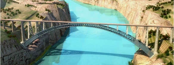 山西準朔黃河特大橋為上承式鋼管拱橋,主跨為360m的鋼管混凝土拱結構,工程量為9100噸。于2009月9月份開始施工,到2011年7月份完工。全橋采用橋為整體節段拼裝、纜索吊吊裝的施工方案,克服了四管拱腳空間定位、整體節段懸拼精確定位、冬季施工等難點。