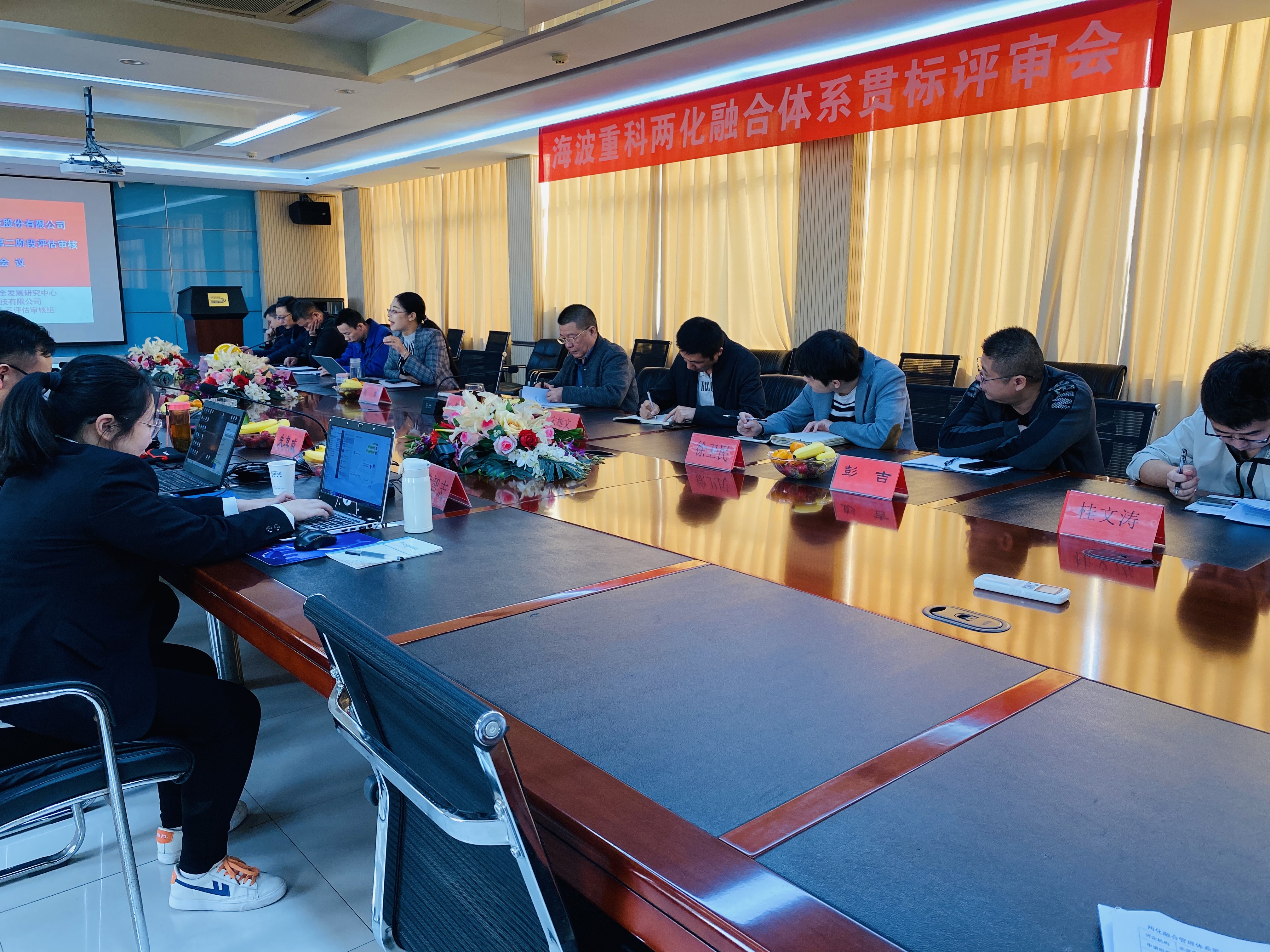 在各部門的積極參與配合下,2020年10月19日上午,國家工業信息安全發展研究中心-北京賽昇科技有限公司-兩化融合管理體系評估審核組熊筱菁老師、朱其威老師、黃智志老師,維正知識產權服務有限公司代小松老師、楊永升老師,海波重科總經理劉乾俊、副總經理宋雄文、總經理辦公室主任侯芳、副主任陳康等各部門經理及負責人列席本次評估審核會議并取得圓滿成功!